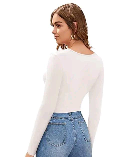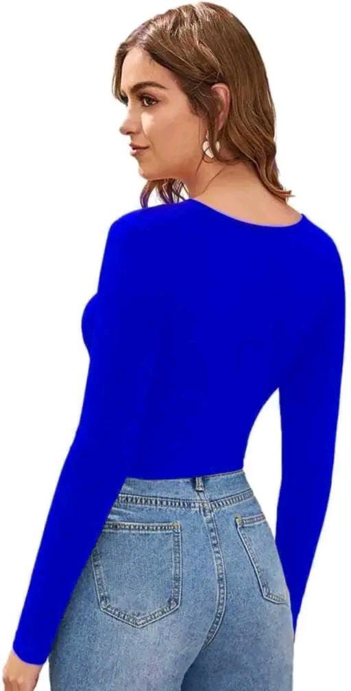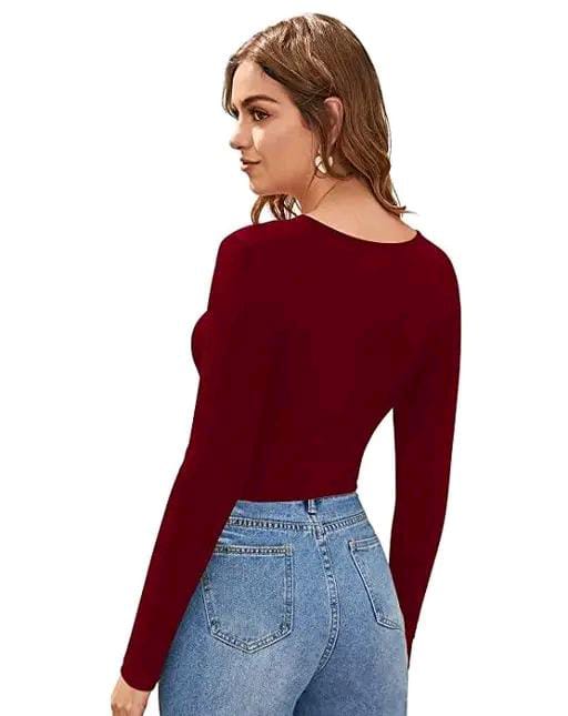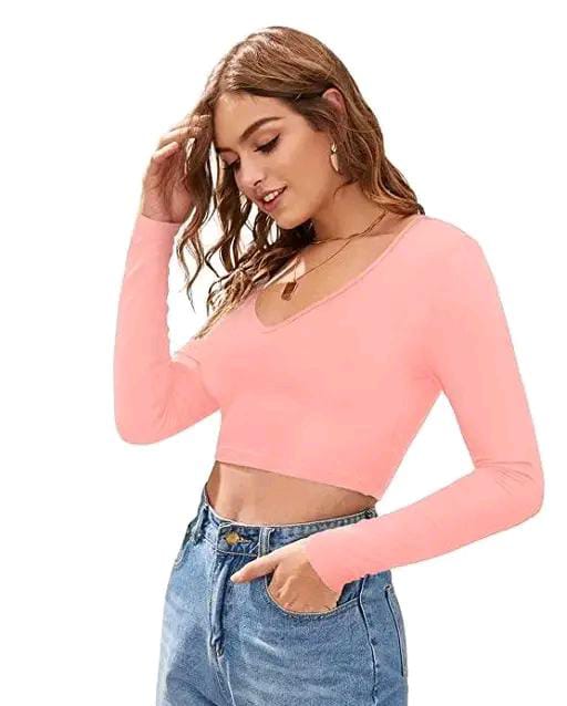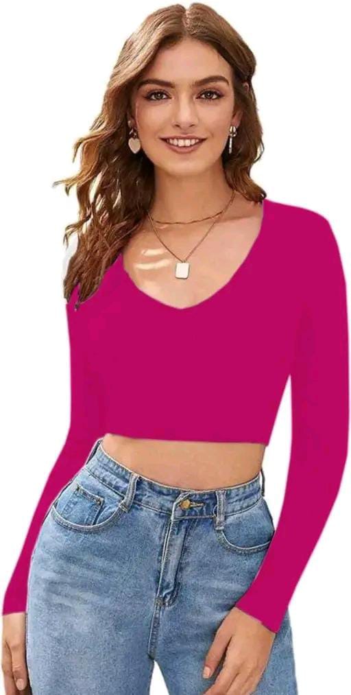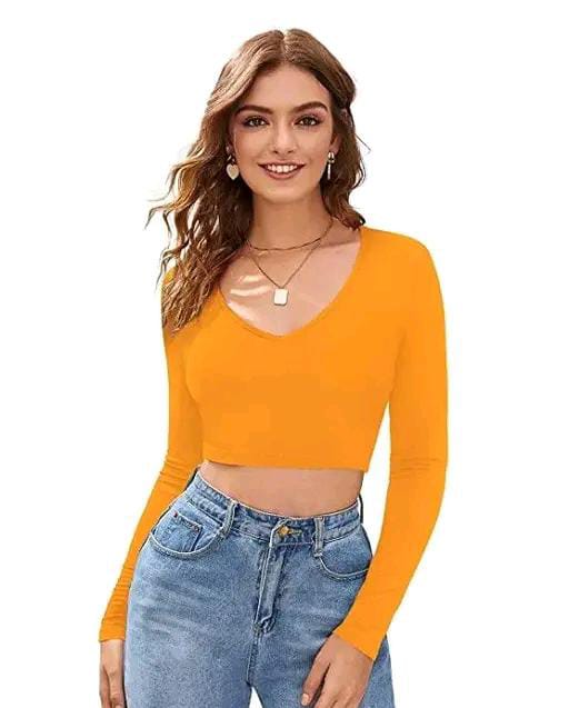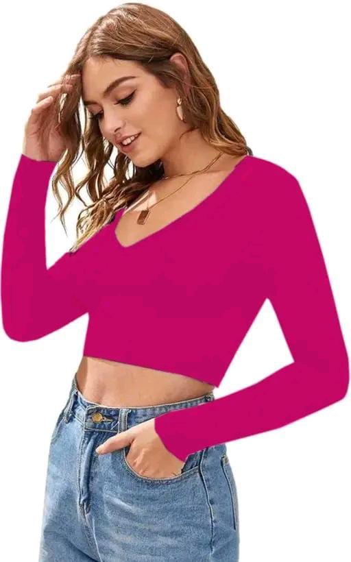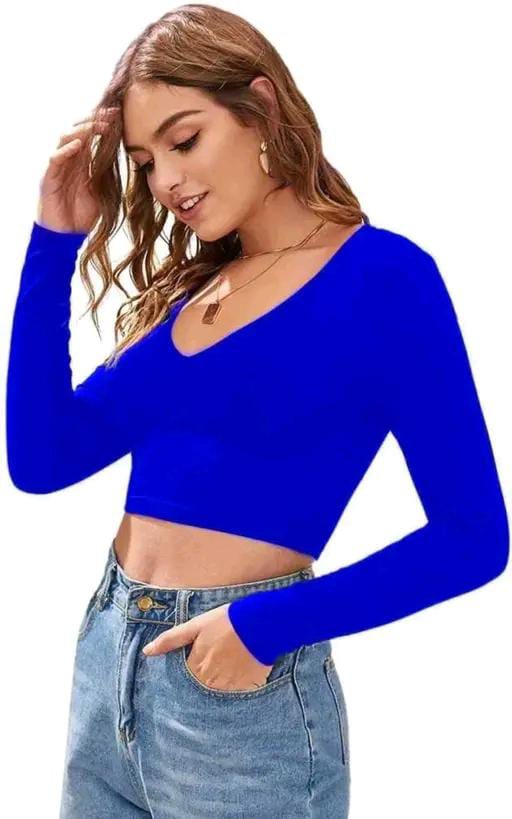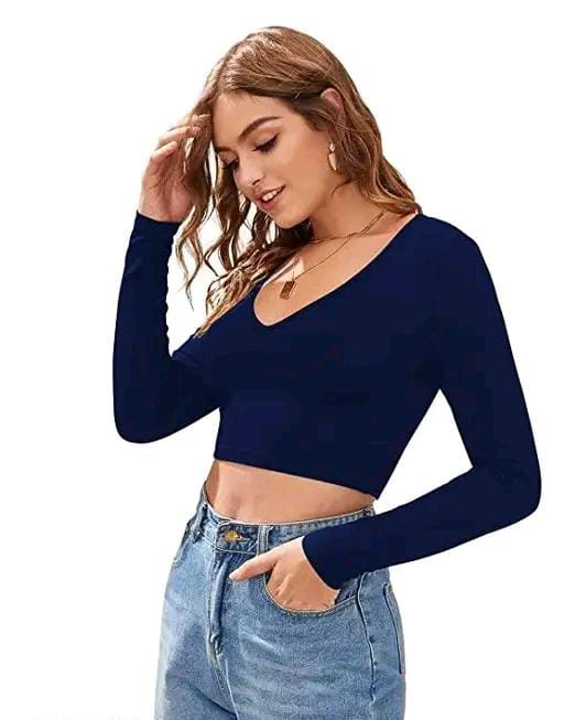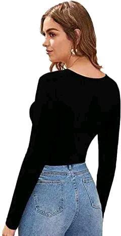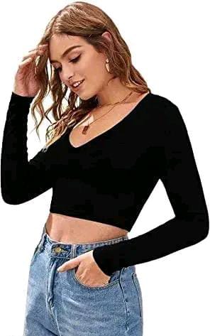 Name: Casual Polyester Blend V-Neck Full Sleeves Black Crop Top (17"Inches)