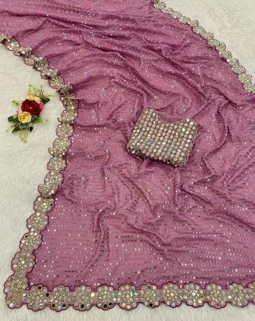 Women Pink Georgette Heavy Sequenced And Real Mirror Worked Saree With Blouse SAREE -